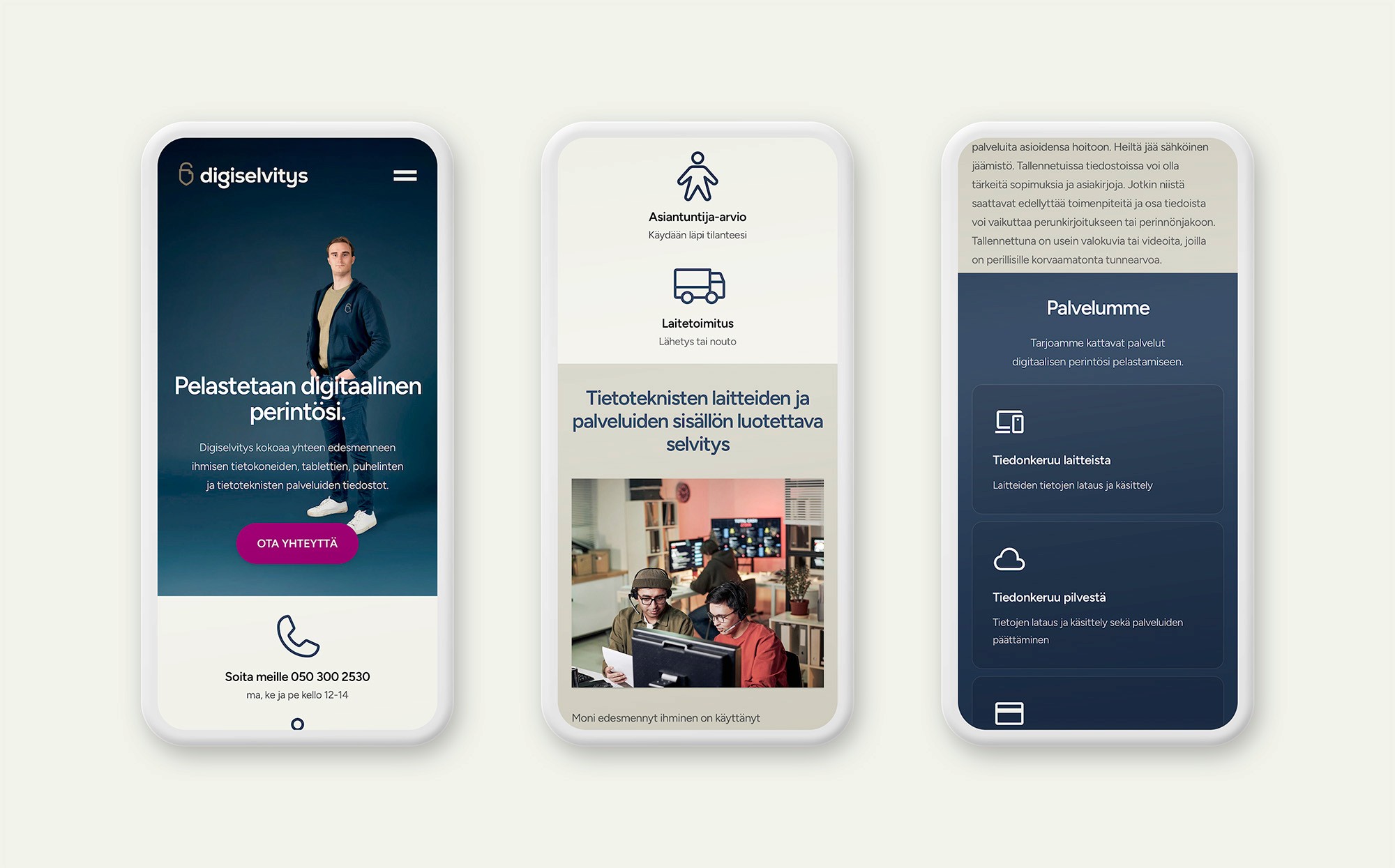 Digiselvitys on palvelu, joka toimii herkällä alueella digitaalisen perinnön ja teknisen datan parissa. Suunnittelun keskeinen haaste oli suunnitella brändi, joka tuntuu samaan aikaan teknisesti luotettavalta ja inhimillisesti lähestyttävältä. Projektissa luotiin brändin ytimen ja visuaalinen ilmeen lisäksi liikemerkki, visuaalinen ilme sekä verkkosivut selkeäksi ja rauhalliseksi kokonaisuudeksi. Liikemerkki yhdistää kolme keskeistä elementtiä: kilven, dokumentin ja avoimen lukon.