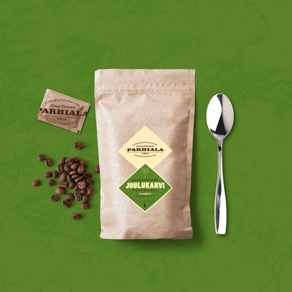Siirtomaatavaraliike Parhialan brändin uudistuksessa otettiin pitkät perinteet huomioon. Ilme uudistettiin modernilla otteella vanhaa säilyttäen ja kirkkailla väreillä luotiin huomioarvoa. Sortimentin laajuudesta huolimatta huolellisen pakkaussuunnittelun avulla saatiin kustannustehokas ja näyttävä toteutus.