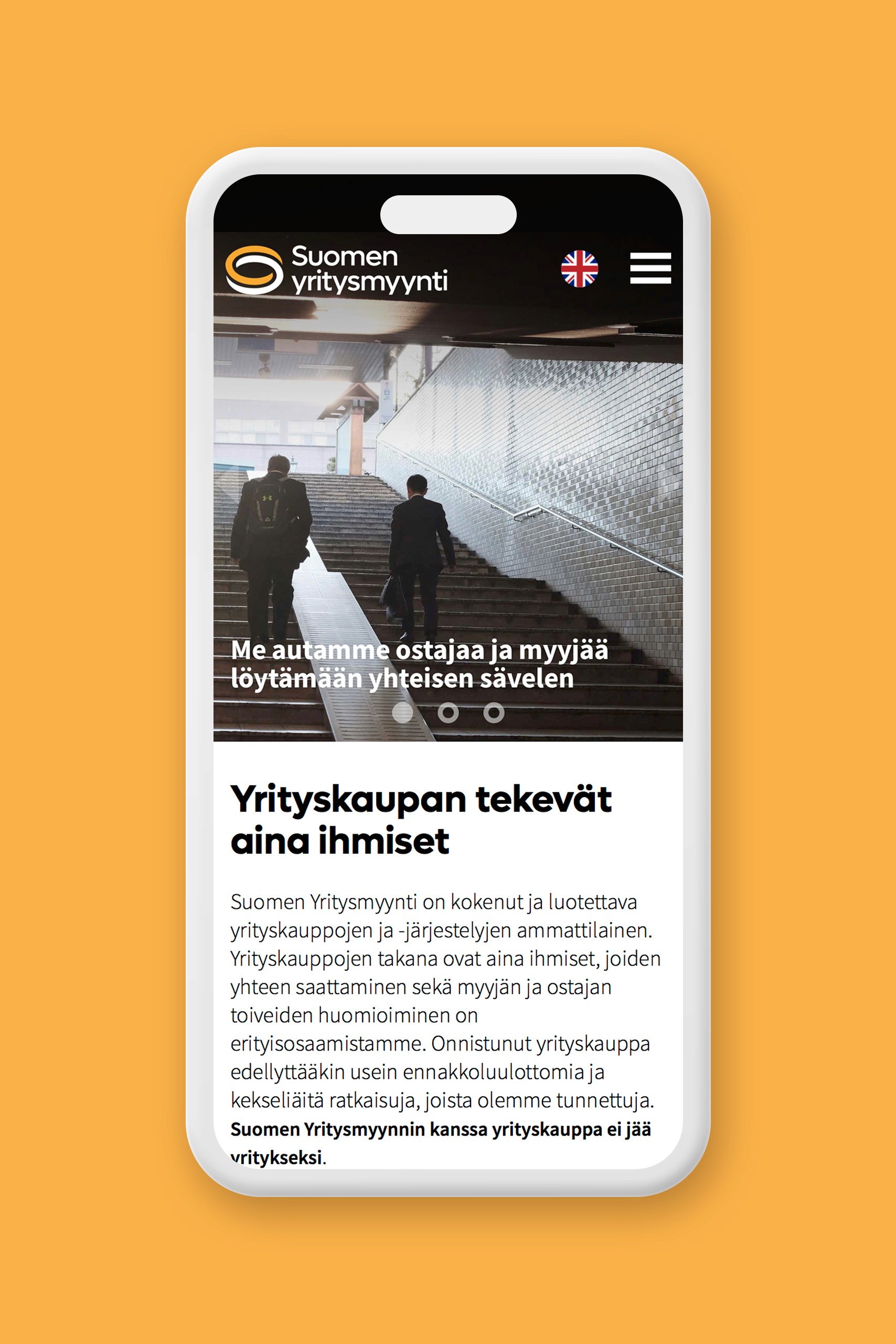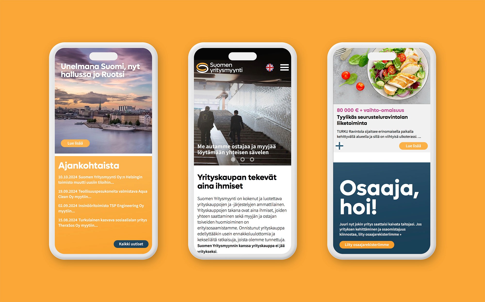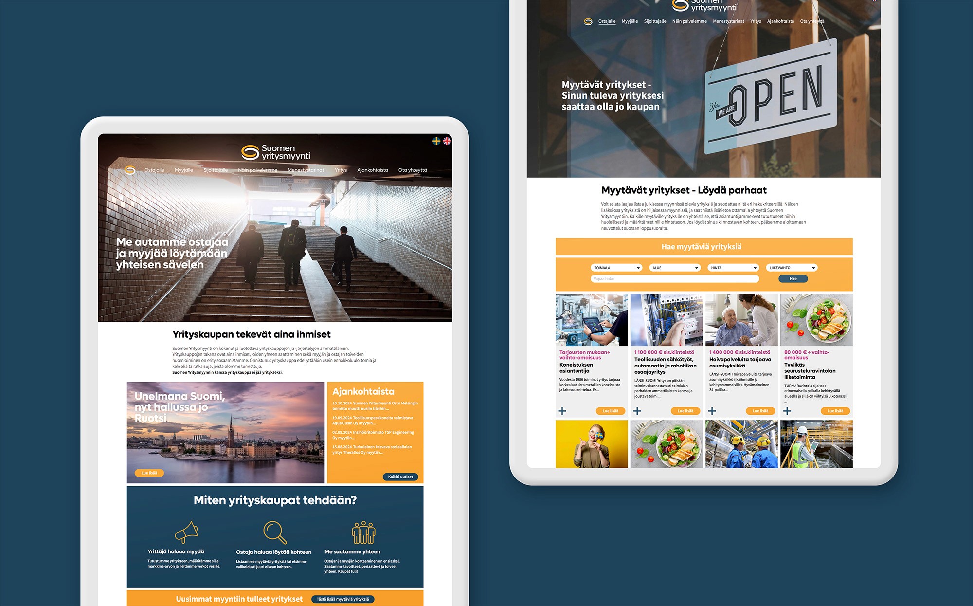 Suomen Yritysmyynnin brändin kirkastuksen yhteydessä uusittiin myös verkkosivut perusteellisesti. Päättymättömään Möbiuksen nauhaan perustuva logo tuo mieleen paitsi S-kirjaimen, myös yhteenliittymisen ja jatkuvuuden. Verkkosivujen yrityshaku mukailee verkkokaupoista tuttuja hakutoimintoja tehden käytöstä helppoa ja loogista. Logosta johdettiin myös monikäyttöinen koriste-elementti.